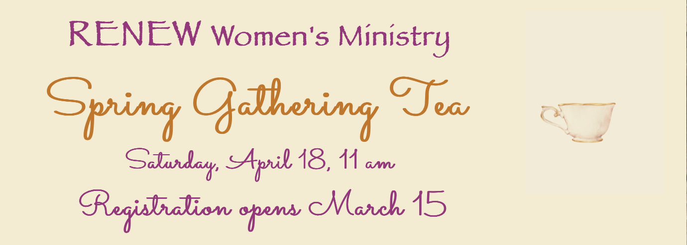 The Renew Women’s Ministry monthly meeting/luncheon is open to women interested in events & ministry.